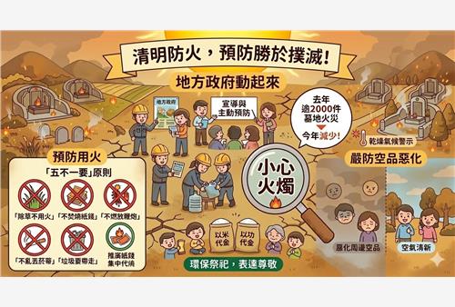 清明防火預防勝於撲滅! 環境部籲地方政府動員:嚴防掃墓火警及空品惡化